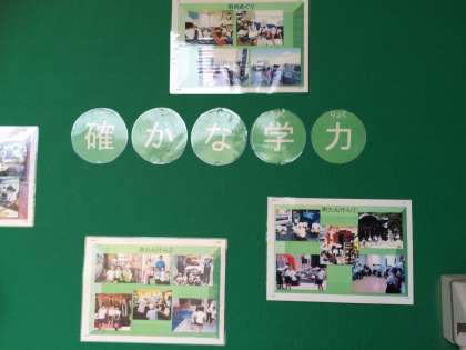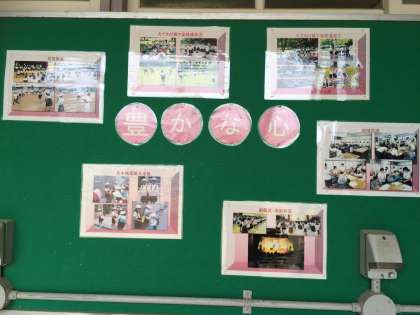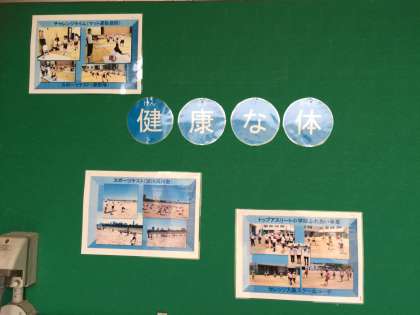 日々の子ども達の活動を「確かな学力」「豊かな心」「健康な体」の3つに分けて、職員室前に写真で掲示しています。