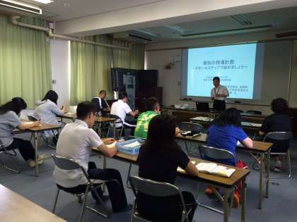 今日は、西原先生を講師としてお招きして、5〜6時間目に巡回相談、午後4時から、研修会「個別の指導計画〜スモールステップで始めましょう〜」を行いました。