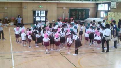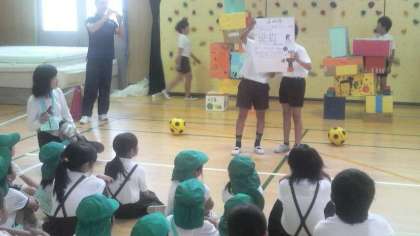 3、4年生が土曜日なので参加できない幼稚園のさくら組・まつ組のお友だちを招待して、明日のお店番の練習です。お店番じゃないお友だちは、さくら組・まつ組のお友だちにやさしくルールを教えてあげたり、しっかり応援しました。