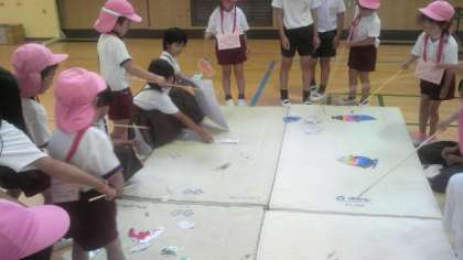3年生は「つれ!つれ!魚」。つりざおを上手にあやつって、何匹つれるかな?