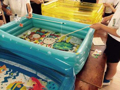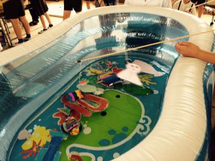 制限時間内に何匹釣れるかな?(魚の裏に得点が書いてあります。)