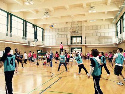 1チーム8人制のソフトバレーボール大会が、今年は海老江東小学校体育館で始まりました。