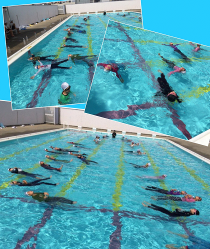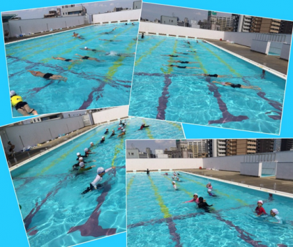 プールの向こう側まで泳がずに歩きました。いつもよりも水の抵抗や体の重さを感じていました。