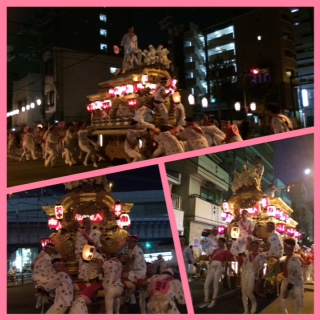 疲れもピークにきた夜8:00頃、阪神野田の交差点で、南之町の地車に出合いました。