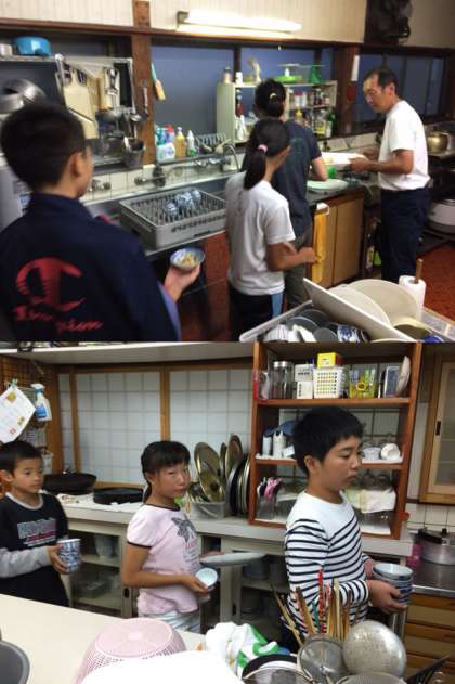 食事の後は、みんなで厨房まで片づけた食器を運びました。おいしくいただいた感謝の気持ちをこめて、