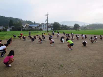 昨日の疲れからか、まだ眠い子どももいますが、みんな揃って体操をしました。