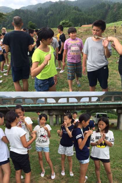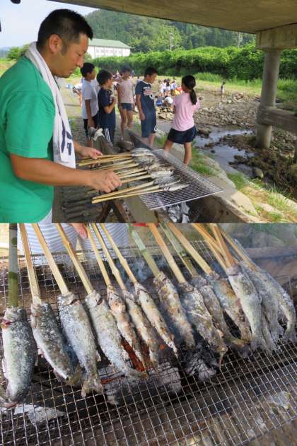 自分たちで捕まえたニジマスは、高原亭の方に炭火で焼いていただきました。