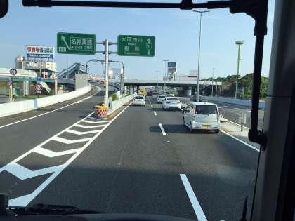 阪神高速池田線に乗っています。福島まで8km。渋滞のため、到着は予定より遅れそうです。