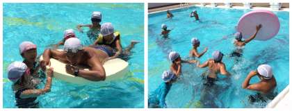 その浮島を押したり、子ども達が引っ張ったりしながら、一往復して、次のグループにバトンタッチします。