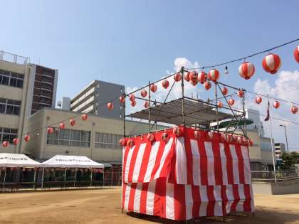 運動場には「盆踊り」のやぐらと提灯がこの土・日曜日の間に、設置されていました。