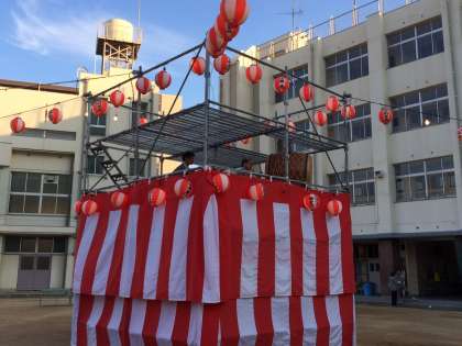 あたりはまだ明るく、人出も少ないのですが、子ども向けのあられ音頭に合わせて、太鼓の音が鳴り響き、運動場がお祭り一色に変わってきました。