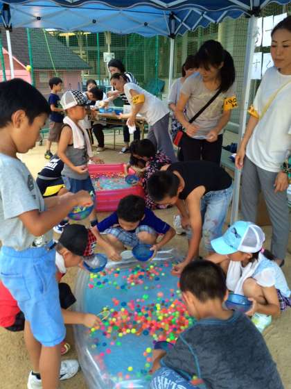 スーパーボールすくいのお店屋さんには、子ども達が続々と来て、ゲットしようと、真剣勝負。