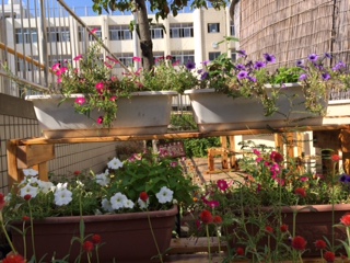 創立60周年の記念製作物として、管理作業員さんがプランター置き台を5台、夏季休業中に、作ってくださいました。