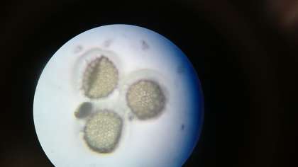 1学期から継続して顕微鏡を扱っていることもあり、顕微鏡をのぞきこんで花粉を発見することにも随分と馴れてきました。