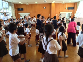 10月1日の運動会で踊る「福島区民音頭」を地域の盆踊りの会「しづ和会」の皆さんに、教えていただきました。