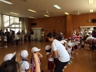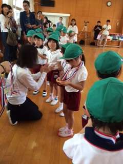 午前で幼稚園の運動会は終わり、プレイルームで閉会式を行いました。