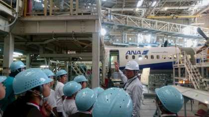 フィンガーのあとに訪れた機体整備工場では、小型機を分解している最中でした。