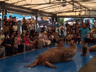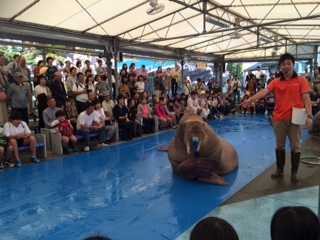 10:00 アシカショー、10:30海獣の王国お食事タイム、11:00セイウチショーを見学しました。