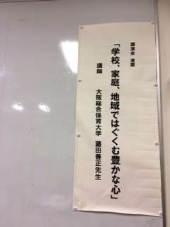 演題は「学校、家庭、地域ではぐくむ豊かな心」です。