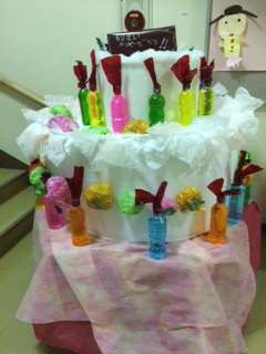 みんなで作ったバースディケーキを会場入り口に飾りました。