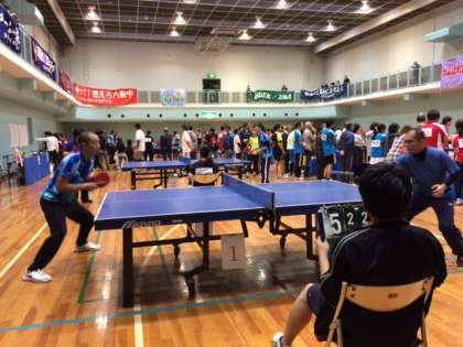 今年の福島区PTA親善卓球大会は、福島スポーツセンターで、過去最高の33チームが参加し、熱戦を繰り広げました。