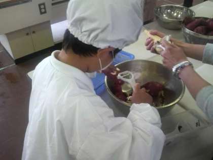 おいもを洗って、むいて、ゆであげて・・・