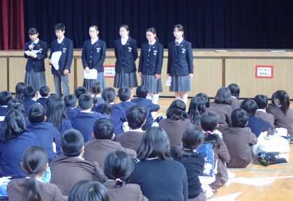 6年生は来年の入学への心構えとして、八阪中学校のオープンスクールに参加しました。(中学校生活はどんなだろう・・・。)生徒会の人たちのあいさつの言葉を聞きながら、子どもたちはどきどきわくわく。中学生のお兄さん、お姉さんたちの集中して授業を受ける姿や、クラブ活動に真剣に取り組むエネルギッシュな姿に圧倒されていました。中学生になったら、わたしたちも負けないでがんばるぞ!という意気込みを見せながら小学校に帰りました。