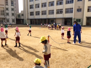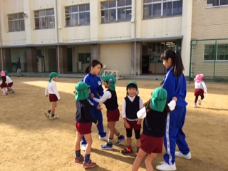 今年も、4名の女子生徒が海老江西幼稚園に来て、幼稚園の先生のお仕事を学びました。4名とも、海老江西小学校の卒業生です。