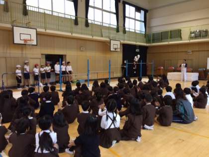 最後に、体育主任から、技が出来るようになるポイントを2点、全校児童に話しました。