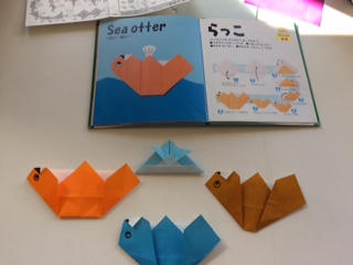 20分休憩に図書室に行き、折り紙ワークショップでラッコを作ってみました。