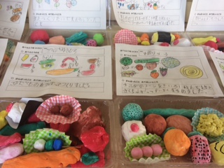 絵具で色をつけ、こねて自分の作りたいお弁当の中身を作ったそうです。