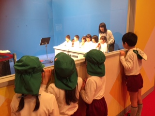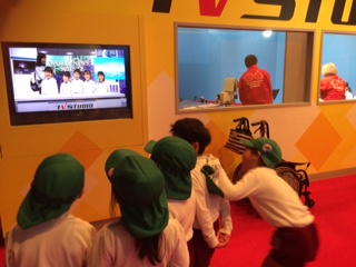 年長まつ組は、5階「やってみる館」のわいわいスタジオで、テレビ撮影。