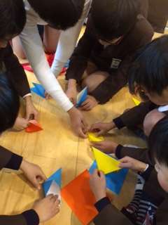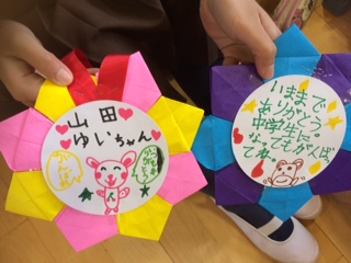 たてわり班でお世話になった6年生に、プレゼントを作りました。