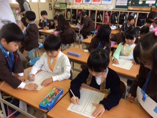 の教室で、今日は2時間目に、年長まつ組の子ども達が授業体験をさせてもらいました。
