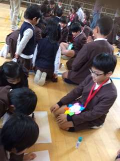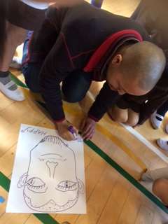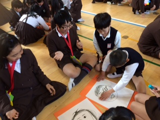 たてわり班の1〜5年生が、6年生の似顔絵を描いてプレゼントしました。