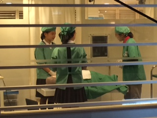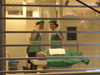 午前中、胸腔鏡手術を体験した女の子が、午後からは、開腹手術を体験するそうです。