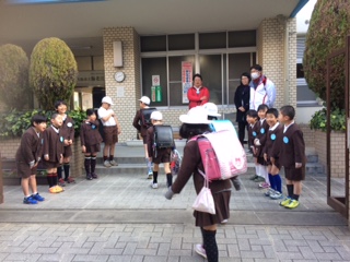 3月のあいさつ運動は、希望したたてわり班が玄関に立ち、元気よく、挨拶を交わしています。
