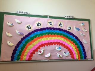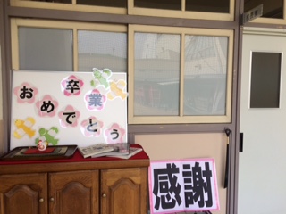 卒業おめでとう! 1・2年、3・4年、校長室前掲示 3月22日