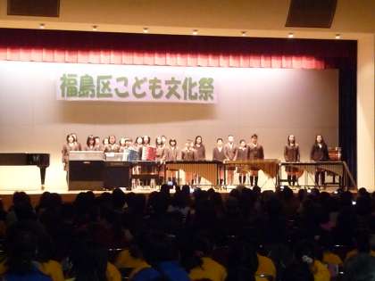 2月16日(日)、福島区子ども文化祭が開催されました。海老江西地区からは、6年生が合奏で「新世界」「ネバーエンディングストーリー」を披露しました。