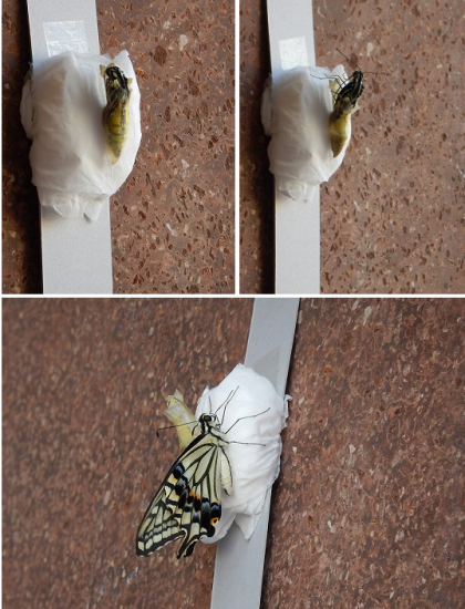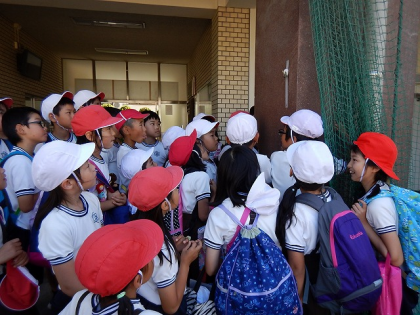 遠足から帰って、下校時刻間近の時間に玄関前に子どもたちがたくさん集まっていました。