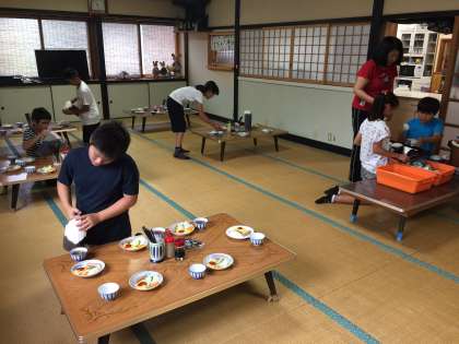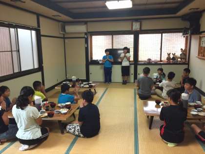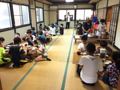 食事係が配膳の手伝いをした後、みんな揃って食堂へ。
