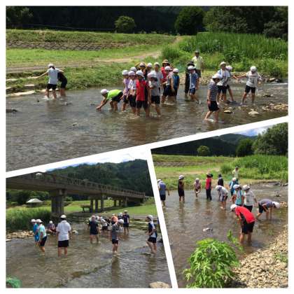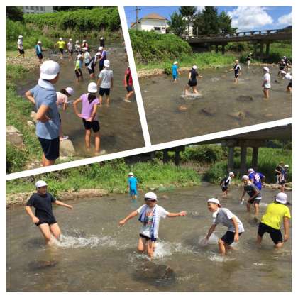 昨日の雨で、水量が増して、朝の段階では川遊びは危険と判断して中止としていましたが、午後から様子を確かめてみて、水量も濁りもおさまっているのを確認できたので、川遊びを行いました。
