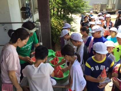 川遊びから帰ると、高原亭のスタッフの方々が、すいかを用意してくださっていました。