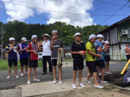 すぐ横の駐車場ですいかの種飛ばし大会もしました。