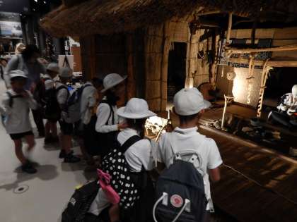 3,4年生は12日に万博記念公園内の「みんぱく」へ行きました。「みんぱく」は国立民族学博物館の略称で世界各地の貴重な文化的資料〜衣服・祭りのお面・狩猟道具などなど…が何百、何千と展示されています。子どもたちはグループでいろいろな展示物を見て回りました。