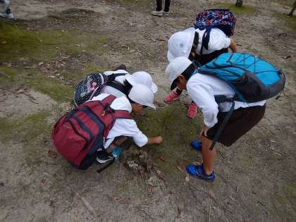 心配した天気もすっかり良くなり、お弁当のあとは、どんぐり拾いやバッタを捕まえたり、公園を楽しく散策しました。