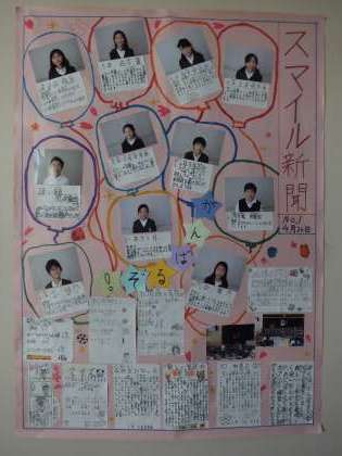 かべ新聞ができました。「スマイル新聞」です。新聞委員会の子ども達が作りました。