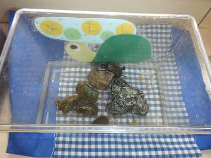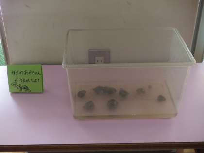 去年、カメの赤ちゃんが生まれました。子ども達は大喜び!みんなで赤ちゃんの名前を考えました。