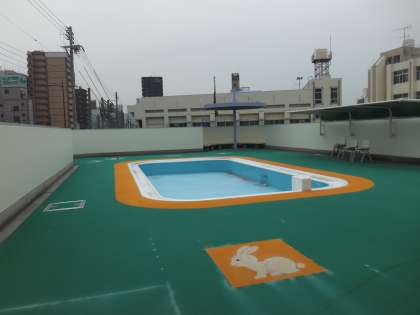 海老江西幼稚園の屋上にあるプールがとってもきれいになりました。ベンチも屋根もピカピカです。営繕班のみなさん、ありがとうございました。