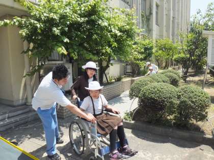 介助では、動き出す前に「動くよ」「曲がるよ」「段があるよ」と、必ず声をかけるようにしましょう。